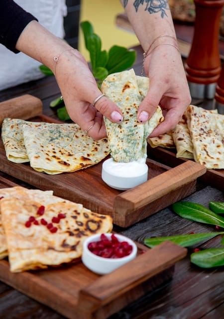 Your adventure begins with Shawarma, a savory wrap filled with spiced meats and fresh toppings, followed by succulent Kebabs grilled to perfection. You'll then savor Tantuni, a Turkish-inspired street food, before venturing into the rich flavors of Qutab, a traditional Azerbaijani flatbread stuffed with various fillings. The tour concludes with a sweet treat of Azerbaijani desserts and a traditional tea ceremony, offering a delightful end to your culinary experience.